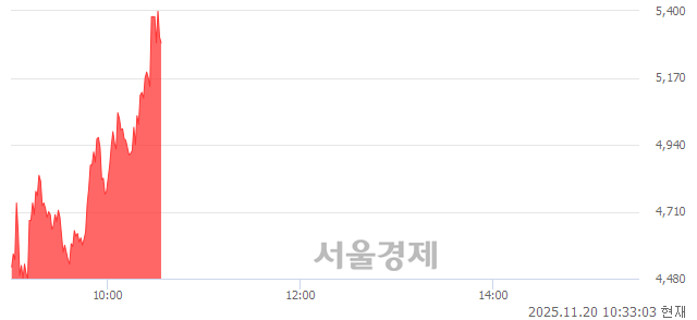 알트는 전일 상한가(4,235원, ▲975, +29.91%)를 기록한데 이어 이틀 연속 강한 상승세를 이어가고 있다.